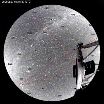 Annotated all-sky camera image from La Palma observatory taken on 2009-08-27 at 04:15:17 UT